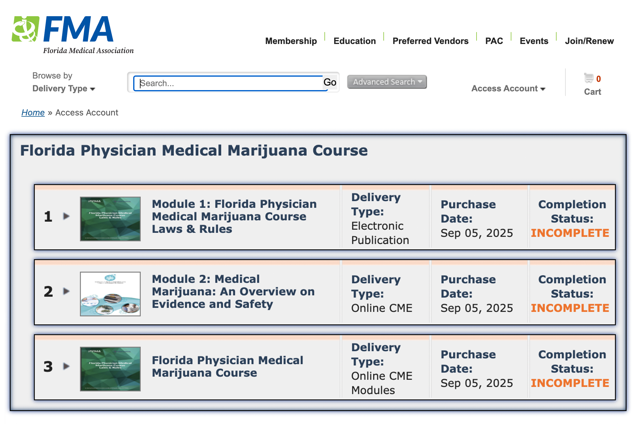 This continuing medical education course is required for all physicians seeking certification to provide medical marijuana treatment orders in Florida.